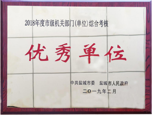 2019年2月,集團(tuán)在2018年度市級(jí)機(jī)關(guān)部門(單位)綜合考核中被鹽城市委、市人民政府評(píng)為“優(yōu)秀單位”。