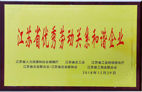 2018年12月,集團(tuán)榮獲“江蘇省優(yōu)秀勞動(dòng)關(guān)系和諧企業(yè)”的稱號(hào)。